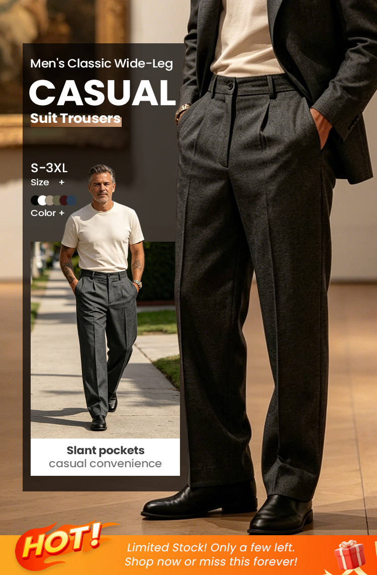 🥳Men's Casual Wide-Leg Pants – Breezy pleated front, easy pull-on style👖