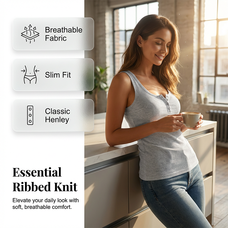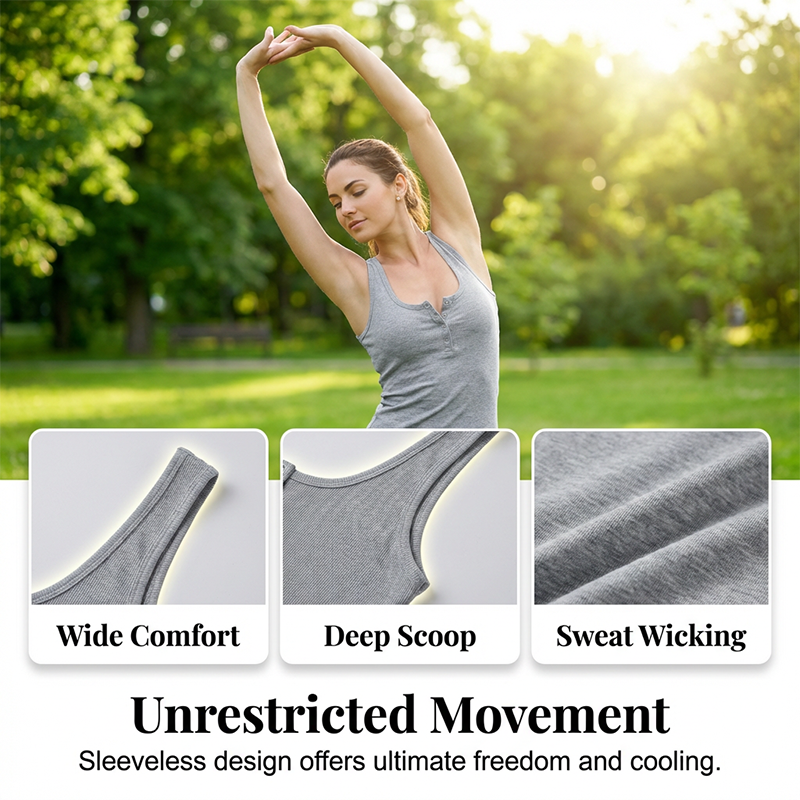 SCOOP NECK WITH BUTTON PLACKET - The classic Henley style adds a touch of visual interest, elevating a simple tank top. It allows you to adjust the neckline for different looks, offering both style and versatile comfort.