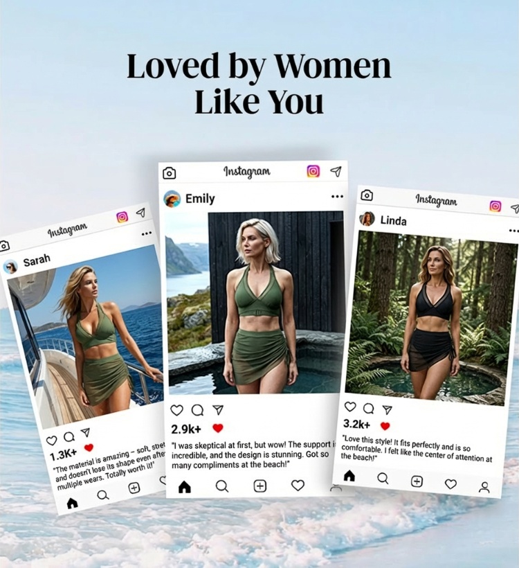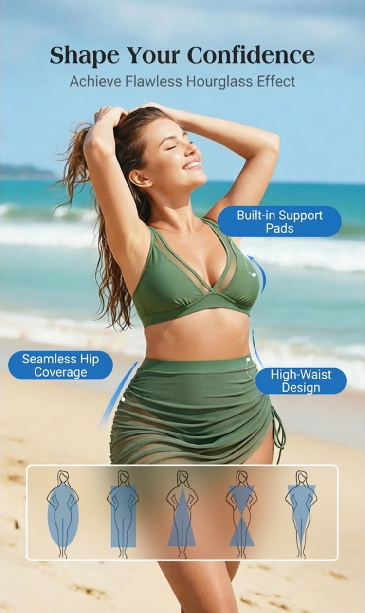 🏖️ High Waisted Bikini Set with Swim Skirt – Gentle tummy control, flattering skirt coverage. Feel confident & comfortable by the water. 🌊🌸