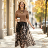 FLOWY LEOPARD MESH SKIRTĀ - Make a statement with the trendy leopard print mesh skirt. Its lightweight, airy construction creates a beautiful, flowing silhouette that moves gracefully with you, adding a touch of modern sophistication to your look.